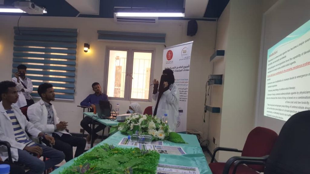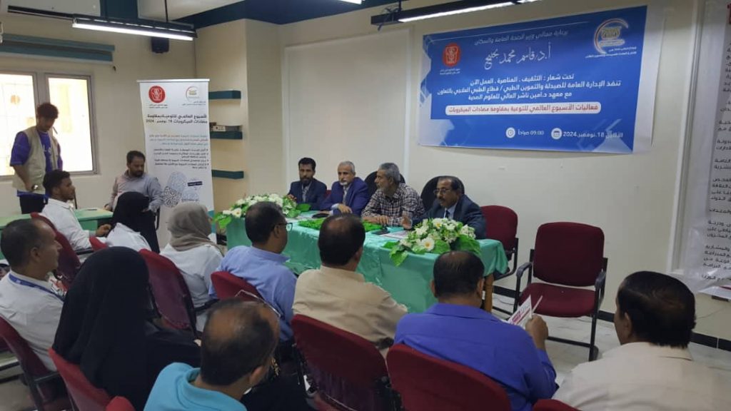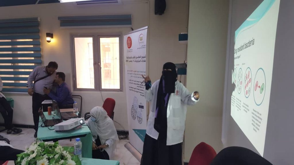 ثم تواصلت تباعا محاضرات تخصصية في مجال مقاومة الميكروبات المضادات الحيوية من كلا من الاستاذة / منال عبدالواسع رئيسة قسم الصيدلة بالمعهد والاستاذة / كلثوم الناخبي مديرة دائرة شئون المرأه والاستاذ/ ياسين العكيمي من وزارة الصحة العامة والسكان