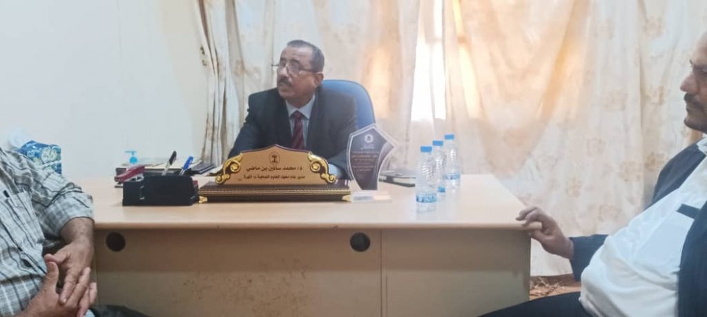 وفي خضم اللقاءات المثمرة لزيارات عميد المعهد د. جمال ناصر امذيب لفرع معهد د. أمين ناشر العالي للعلوم الصحية في محافظ المهرة التقى اليوم بالأخ د. عوض مبارك سعد مدير عام مكتب الصحة العامة والسكان بمحافظة المهرة وناقش معه تحديد احتياجات المحافظة من التخصصات الصحية التي يمكن اعتماد فتحها للمدينة الطبية وكذلك التأهيل والتدريب للطلاب ومدى احتياج المديريات من الكادر الصحي المؤهل.