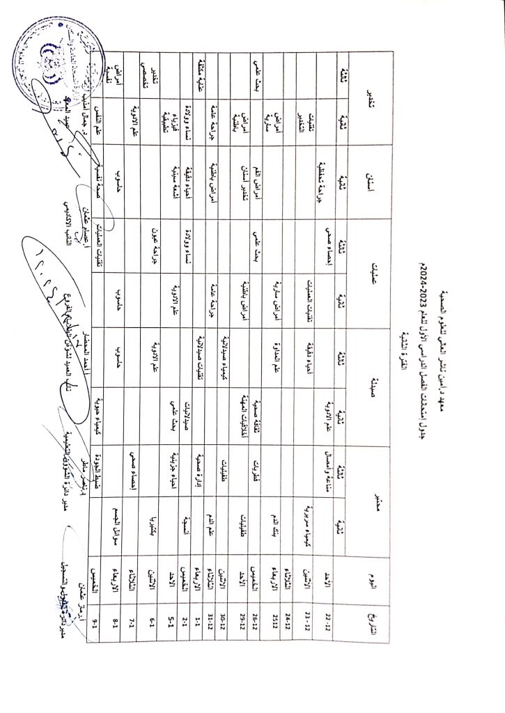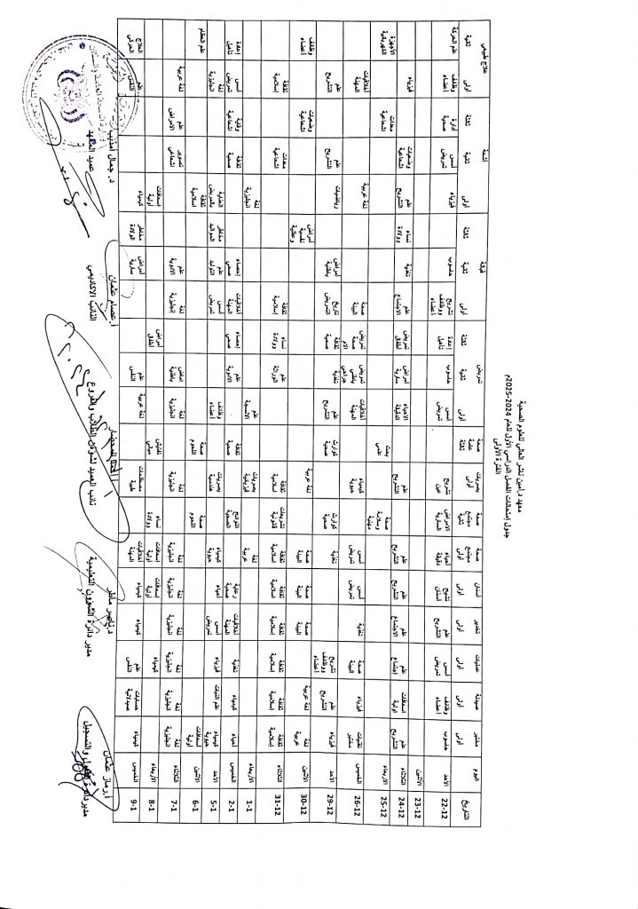 جدول امتحانات الفصل الدراسي الأول للعام ٢٠٢٣ / ٢٠٢٤جدول امتحانات الفصل الدراسي الأول للعام ٢٠٢٣ / ٢٠٢٤ 2024-12-17zuhaer ahmad