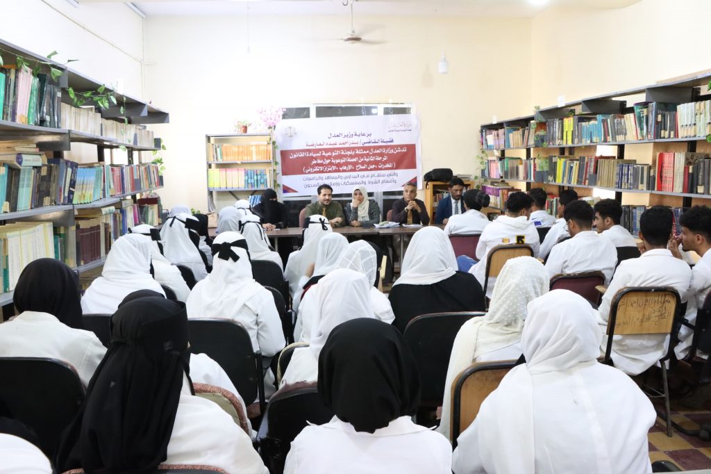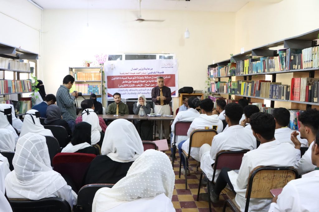 لليوم الرابع تواصلت فعاليات الاحتفالية بعيد التأسيس الخامس والخمسين لمعهد الدكتور أمين ناشر العالي للعلوم الصحية وبحضور عميد المعهد د / جمال ناصر امذيب و بتنسيق وتنظيم كلا من نائب العميد لشئون الطلاب و الفروع الأستاذ/ أحمد المحضار و مديرة دائرة الأنشطة بالمعهد الدكتورة / رباب هرهره وبرعاية وزارة العدل ممثلة بوزير العدل القاضي بدر العارضة، نظمت لجنة سيادة القانون حلقة نقاشية بمعهد أمين ناشر الدكتور أمين ناشر العالي للعلوم الصحية، حملتها التوعية القانونية التي تهدف إلى تعزيز الوعي المجتمعي بمخاطر الظواهر السلبية والحد من انتشارها.