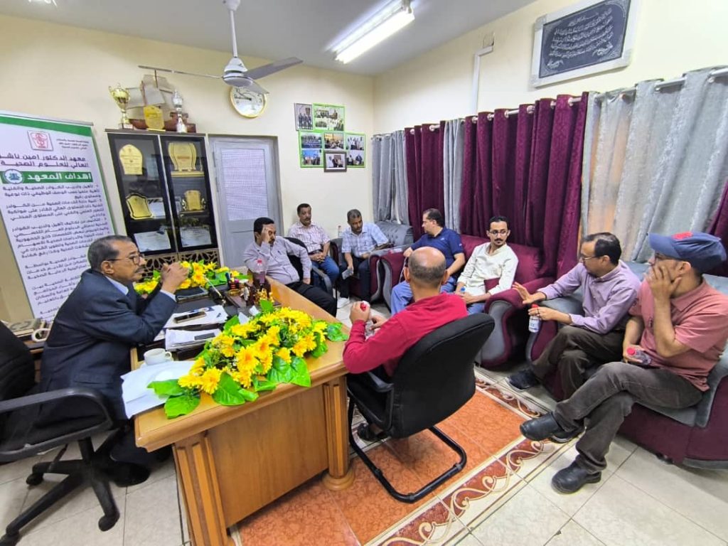 التقى اليوم عميد معهد د. أمين ناشر العالي للعلوم الصحية الدكتور/ جمال ناصر امذيب فريق مهندسي شركة سينرجي المشرفة هندسيا على المرحلة الأولى لأعمال الترميم وإعادة التأهيل لعدد من اقسام المعهد والتي تعتبر جزءا المرحلة الخامسه في مشاريع يونوبس على مستوى المرافق الصحية في اليمن عموما ولتدشين مرحلة تأهيل بعض المرافق في معهد أمين ناشر لاطلاع العمادة على ما تم تنفيذه حتى الان من اعمال المشاريع التي تمولها دولة المانيا الاتحادية في معهد د. أمين ناشر العالي للعلوم الصحية وتنفيذها عبر مكتب الأمم المتحدة لخدمات المشاريع UNOPS