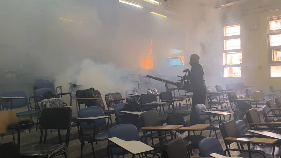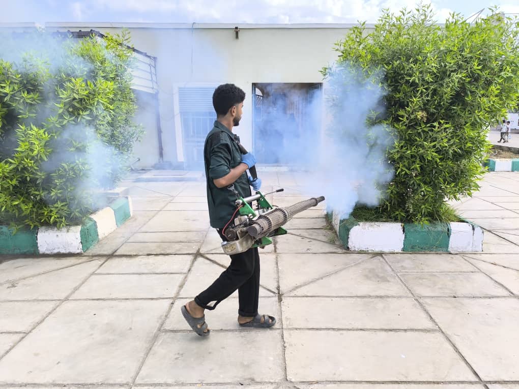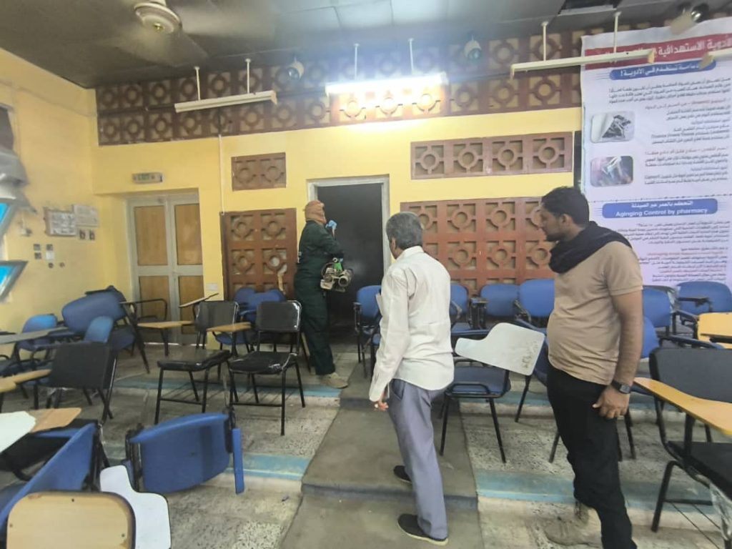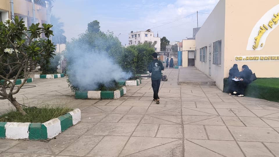 تمت اليوم في معهد د. أمين ناشر العالي للعلوم الصحية في مدينة خورمكسر وفي اطار توفير بيئة نظيفة التي رفعها الدكتور / جمال ناصر امذيب منذ تولية منصب عميد المعهد ، عملية الرش الضبابي لدرء الامراض التي عادة تنقل عبر الحشرات و خصوصا البعوض و تأتي هذة العملية بالتنسيق مع وزارة الصحة العامة والسكان عبر وكيل وزارة الصحة العامة والسكان لقطاع الرعاية الصحية الأولية الدكتور علي احمد الوليدي و بتنفيذ من مشروع مكافحة حمى الضنك في المحافظات اليمنية المتضررة التابع لمركز الملك سلمان للاغاثة والاعمال الانسانية حيث قام فريق الرش بالمباني الادارية و بالسكن الداخلي للطالبات و القاعات الدراسية والحمامات و احواض الاشجار و غيرها من الاماكن التي تعتبر بيئة مناسبة لتكاثر الحشرات والبعوض الناقلة للامراض و قد اشرف على عملية الرش الاستاذ / نبيل صديق مدير دائرة صحة المجتمع بالمعهد.