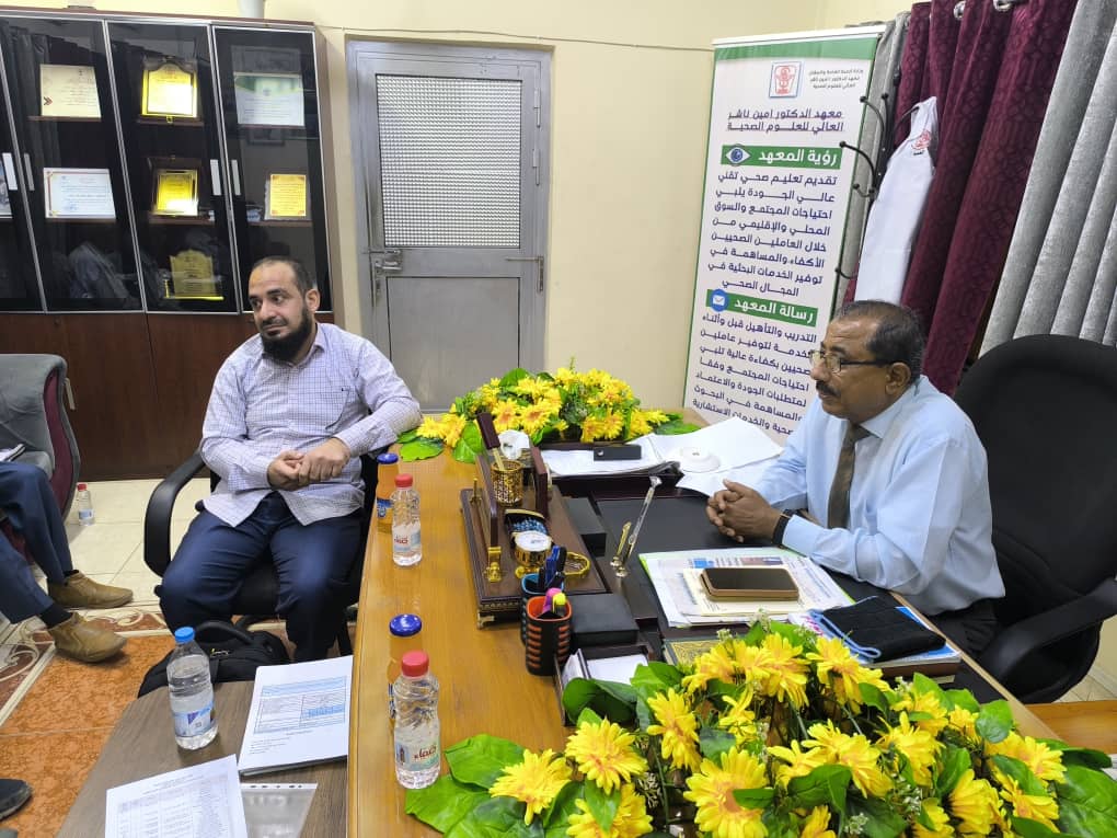 التقى في مكتبه اليوم عميد معهد الدكتور / أمين ناشر العالي للعلوم الصحية الدكتور/ جمال ناصر امذيب ،