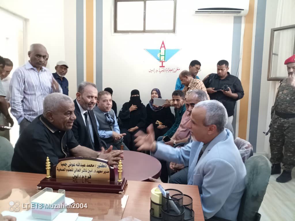حيث كان في استقبالهم بتلك الزيارة مدير المعهد د. محمد عبد الله جمبا، هذا وقد استهلت الزيارة ببداية ترحيبية من قبل المدير بضيوفه معبرا عن سروره بهذه المبادرة واللفتة التي تعتبر دعماً معنويا وأكاديميا كبيرا من قبل قطاع السكان بوزارة الصحة العامة والسكان وادارات المحافظة للمعهد وله شخصيا كعميد للمعهد.