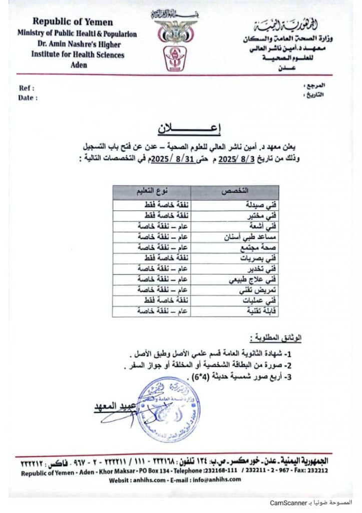 الاعلان عن فتح باب التسجيل والقبول في معهد د. أمين ناشر العالي للعلوم الصحية للعام الدراسي الجديد 2025 / 2026 مالاعلان عن موعد فتح باب التسجيل والقبول في معهد د. أمين ناشر العالي للعلوم الصحية للعام الدراسي الجديد 2025 / 2026 م 2025-07-17zuhaer ahmad