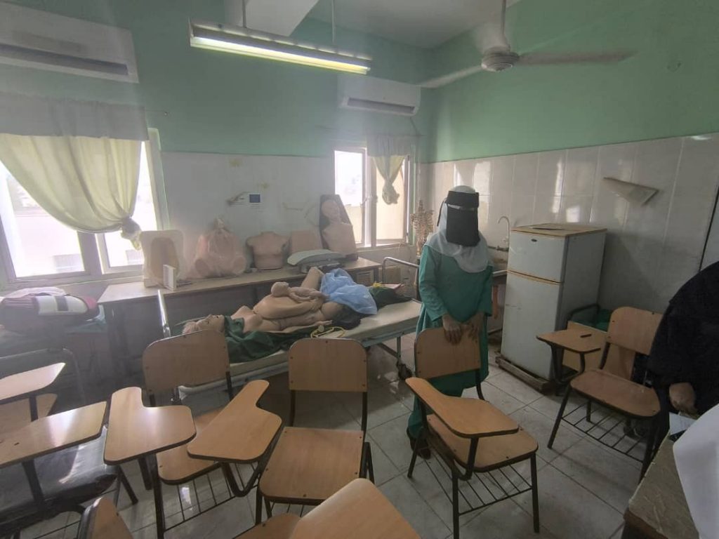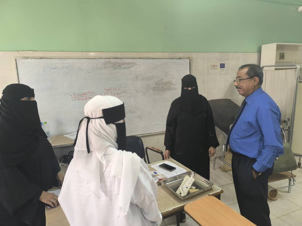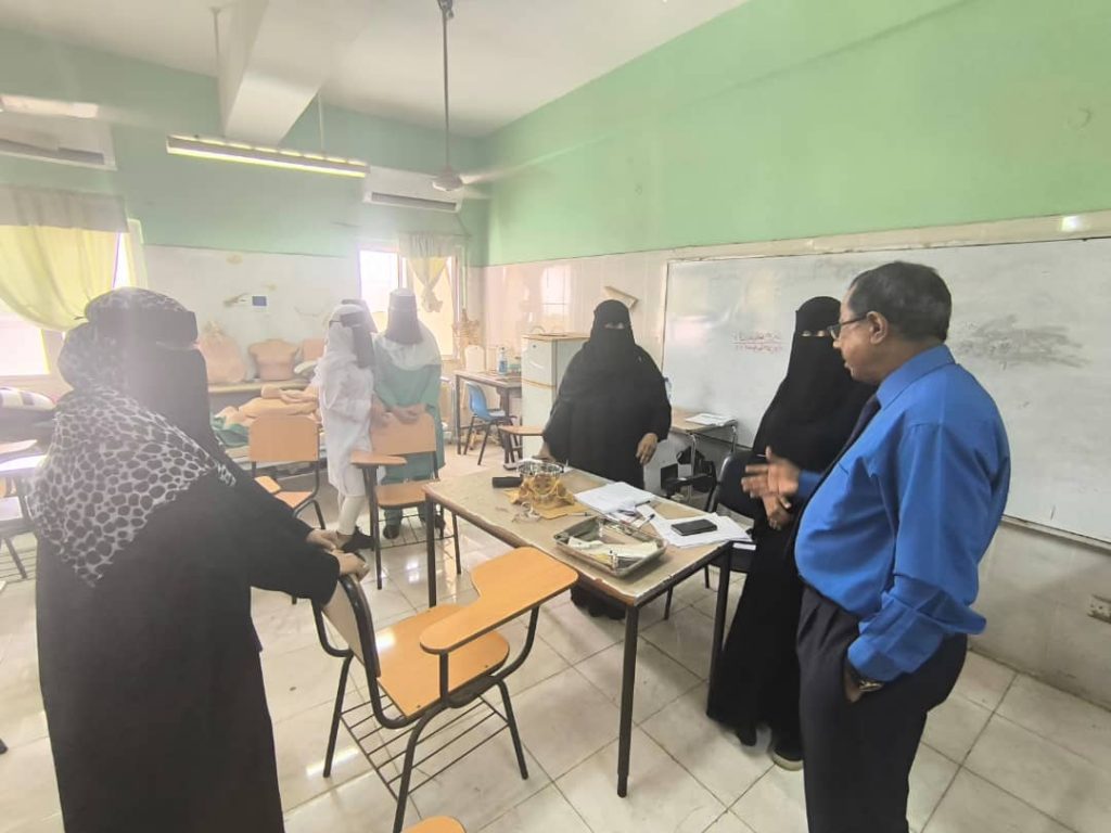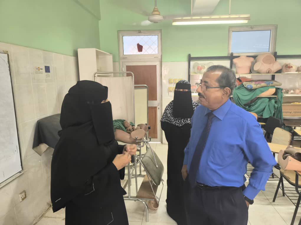 قام الدكتور جمال ناصر امذيب عميد معهد الدكتور أمين ناشر العالي للعلوم الصحية بزيارة فصول و معمل القبالة في المعهد للاطلاع على سير عمل لجنة الدعم والتقييم لتهيئة الطالبات في قسم القبالة لسوق العمل والممول برنامجهم من منظمة يمان للتنمية.