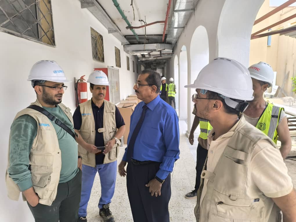 من جانب اخر قام عميد المعهد بتفقد ما تم انجازة من اعمال الترميم وإعادة التأهيل لمباني و تجهيزات المعهد ضمن المعونة الألمانية و التي تنفذها UNOPS حاثا المنظمة والمقاول على الالتزام بتسليم المباني ضمن المواعيد المحددة و المتفق عليها للتسريع في بدء دراسة المرحلة التالية لضمان ادراجها ضمن برنامج الجهة الممولة الممثلة بالحكومة الالمانية