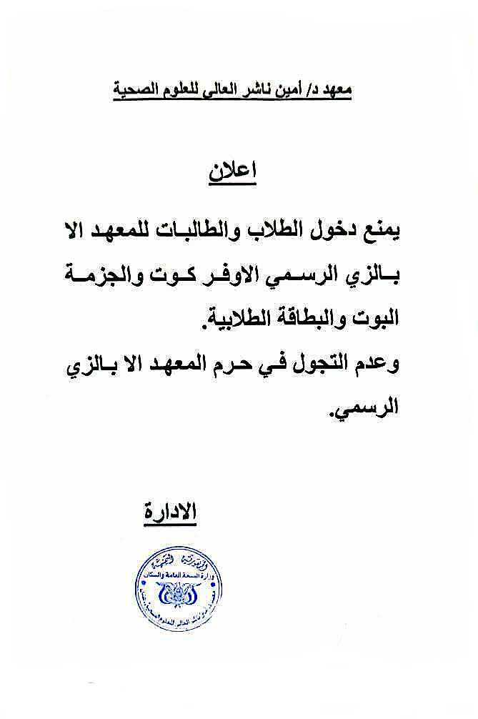 اعلان حول الالتزام بالزي الرسمي للمعهد