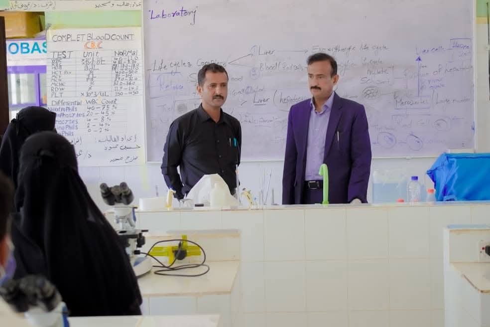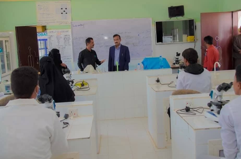 وتفقد المحافظ” المختبرات التطبيقية والمعامل التدريبية، واطلع على جاهزيتها، موجهاً بسرعة تلبية الاحتياجات وتحديث التجهيزات بما يتماشى مع المعايير العلمية والفنية الحديثة، بما يمكّن الطلاب من اكتساب المهارات اللازمة لمواكبة سوق العمل والمهن الصحية.