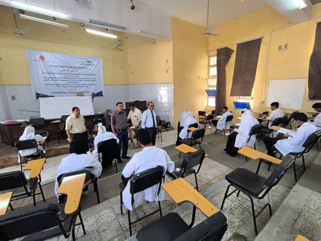 وقد طاف صباح اليوم عميد المعهد الدكتور جمال ناصر امذيب رفقة نائبه لشئون الطلاب والفروع الأستاذ احمد المحضار بقاعات أداء الامتحانات لمتابعة سير الأداء لختام هذه الدورة الامتحانية واستمع لملاحظات مراقبي القاعات وطلاب وطالبات المعهد المؤدين للامتحانات.