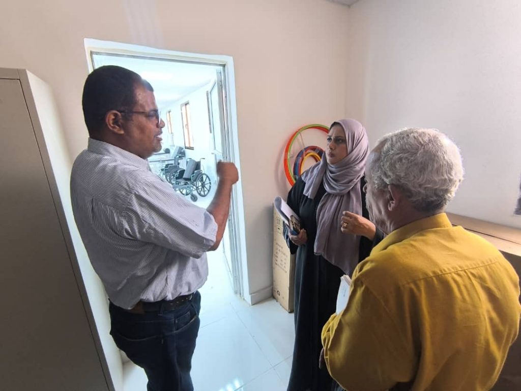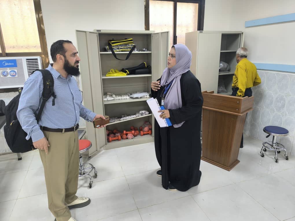 عقب اللقاء قام الخبير الخارجي الدكتور / نزار اختر والأستاذة / سماح بايمين مشرفة مشاريع الصحة بالمنظمة بجولة تفقدية لمكاتب وفصول ومعمل قسم العلاج الطبيعي الذي قامت المنظمة بإعادة تأهيلها وتجهيزها لإقامة برنامج بكالوريوس العلاج الطبيعي.
