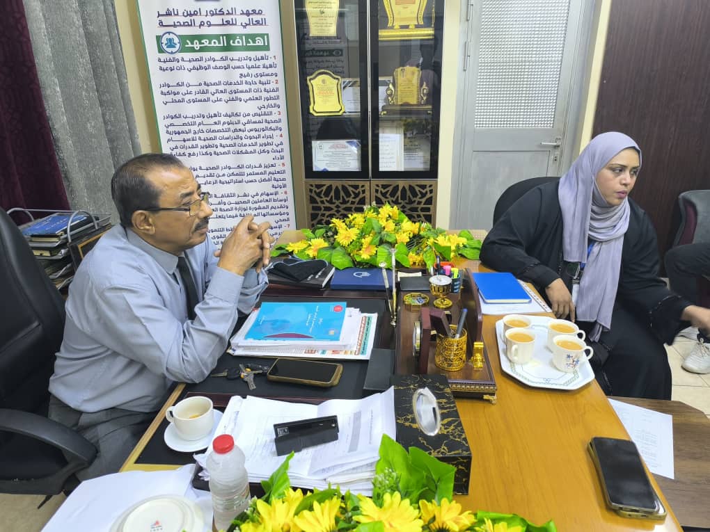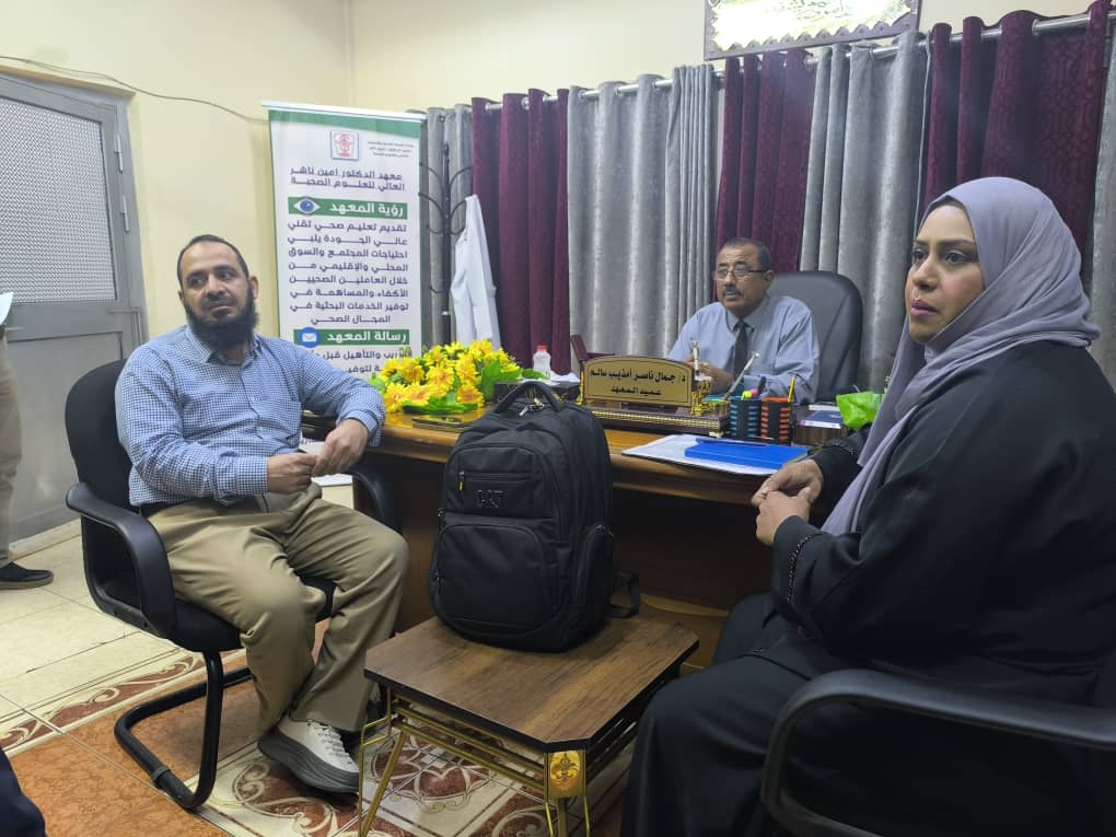 استقبل في مكتبه اليوم عميد معهد الدكتور أمين ناشر العالي للعلوم الدكتور / جمال ناصر امذيب فريق من منظمة هاند يكاب انترناشونال Handicap International لمناقشة اللمسات الأخيرة لإقامة برنامج البكالوريوس التكميلي في تخصص العلاج الطبيعي.