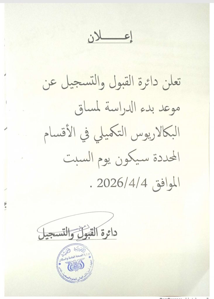 الاعلان عن موعد بدء الدراسة لمساق البكلاريوس التكميلي