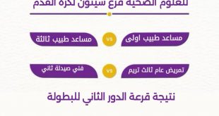ضمن فعاليات الملتقى الثقافي الرياضي السابع بالمعهد، نعلن عن نتائج قرعة نصف النهائي لمنافسات البطولة، والتي ستشهد مواجهات نارية 🔥 ومنافسة قوية بين الفرق المتأهلة، على طريق الوصول إلى النهائي الحلم! ⚽🏅 ✨ المواجهات المرتقبة: 🔹 مساعد طبيب عام – مستوى ثالث 🆚 مساعد طبيب عام – مستوى أول 🔹 …