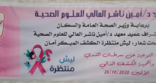 في اطار شهر التوعية العالمي بسرطان الثدي (شهر أكتوبر من كل عام) و برعاية وزير الصحة العامة و السكان د. ناصر محسن باعوم و تحت إشراف و حضور عميد معهد د. أمين ناشر العالي للعلوم الصحية د. نجيب ناصر الحميقاني اقيمت فعالية توعوية لطالبات المعهد عن سرطان الثدي و أهمية الكشف الذاتي و …