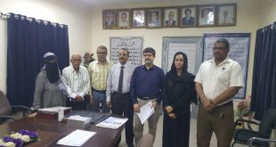 استقبل في مكتبه اليوم عميد معهد د/ أمين ناشر العالي للعلوم الصحية د/ جمال ناصر امذيب وفد من منظمة Handicap International المتخصصة في دعم قطاعات العلاج الطبيعي وإعادة التأهيل برئاسة مدير المنطقة الجنوبية محمد عمران والمدير الإقليمي ريشما عزمي وعضوية مديرة المشاريع عدن / لحج خديجة محمد عبدالباري والمسئول الفني …