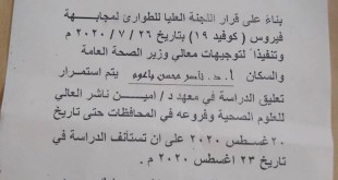 أكمل القراءة »عاجل : تمديد تعليق الدراسة للمعهد بسبب وباء كورونا حتى إشعار آخر