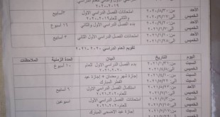 جدول سير إمتحانات الفصلين الاول و الثاني للعام الدراسي ٢٠١٩ / ٢٠٢٠ م العام موازي