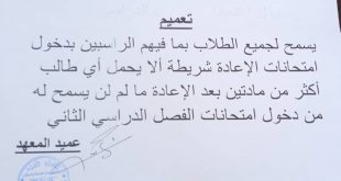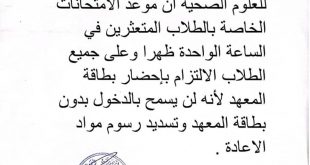 تعميم لجميع الطلاب بما فيهم الراسبين بخصوص امتحان الاعادة