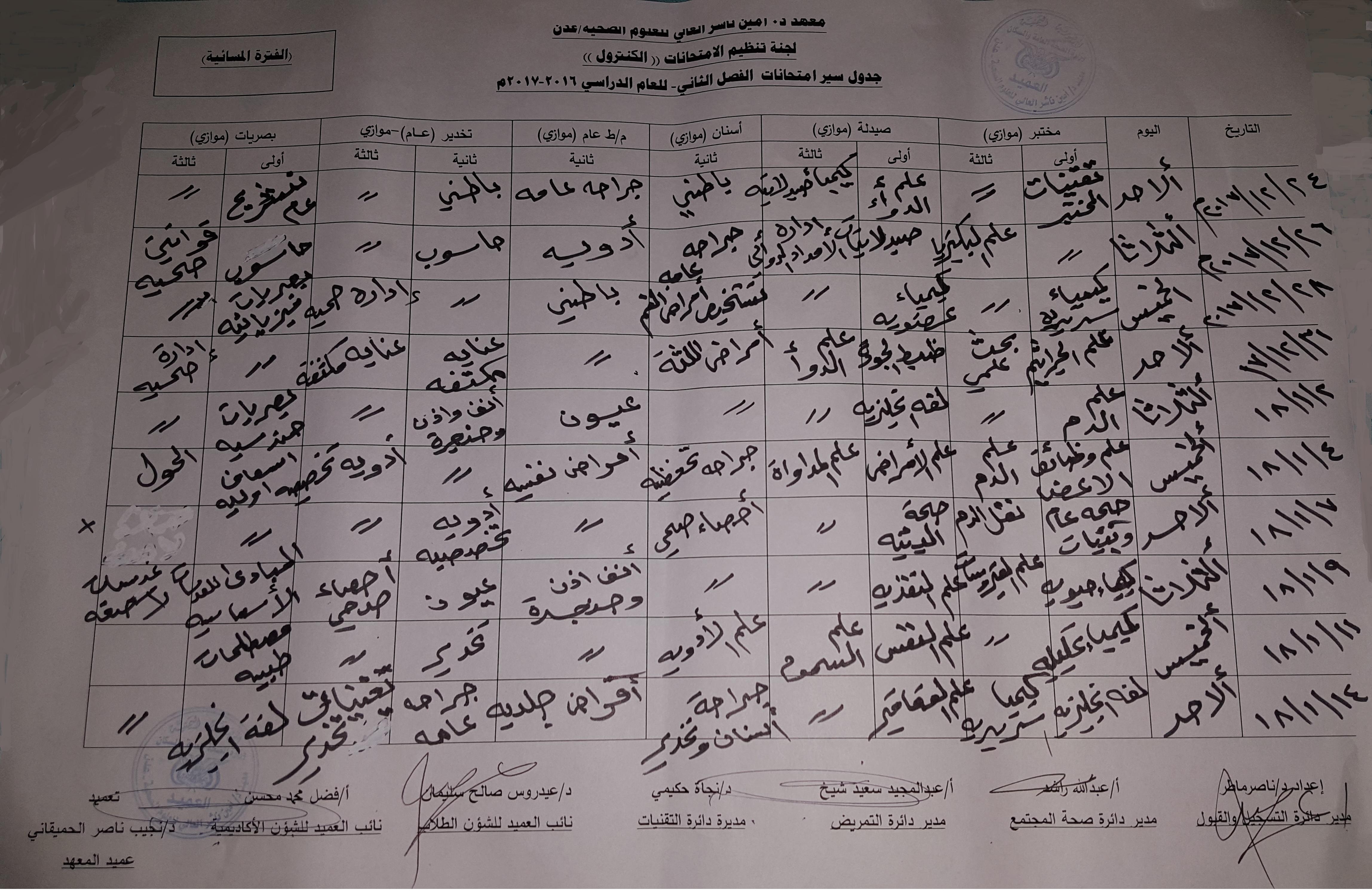 تنوية هـــام : ( تعديل ) جدول سير إمتحانات الفصل الثاني للعام الدراسي 2016 – 2017 مجدول سير إمتحانات الفصل الثاني للعام الدراسي 2016 – 2017 ماضغط هنا لتحميل الفترة الصباحية بصيغة PDF——————————————————————–اضغط هنا لتحميل الفترة المسائية بصيغة PDF 2017-12-18zuhaer ahmad