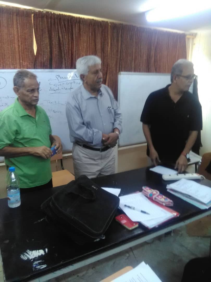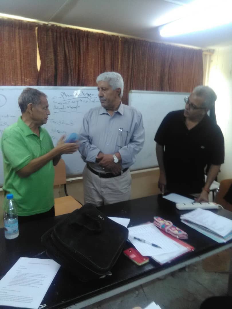 حضر زيارة وزير الصحة العامة و السكان لمدرسة التمريض في مستشفى الجمهورية التعليمي كلاً من د. صادق محمد سالم مستشار عميد معهد د. أمين ناشر العالي للعلوم الصحية و د. علي الوليدي وكيل وزارة الصحه العامة و السكان .