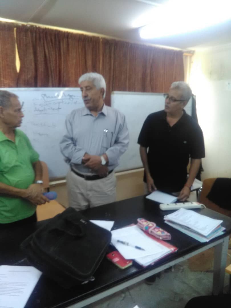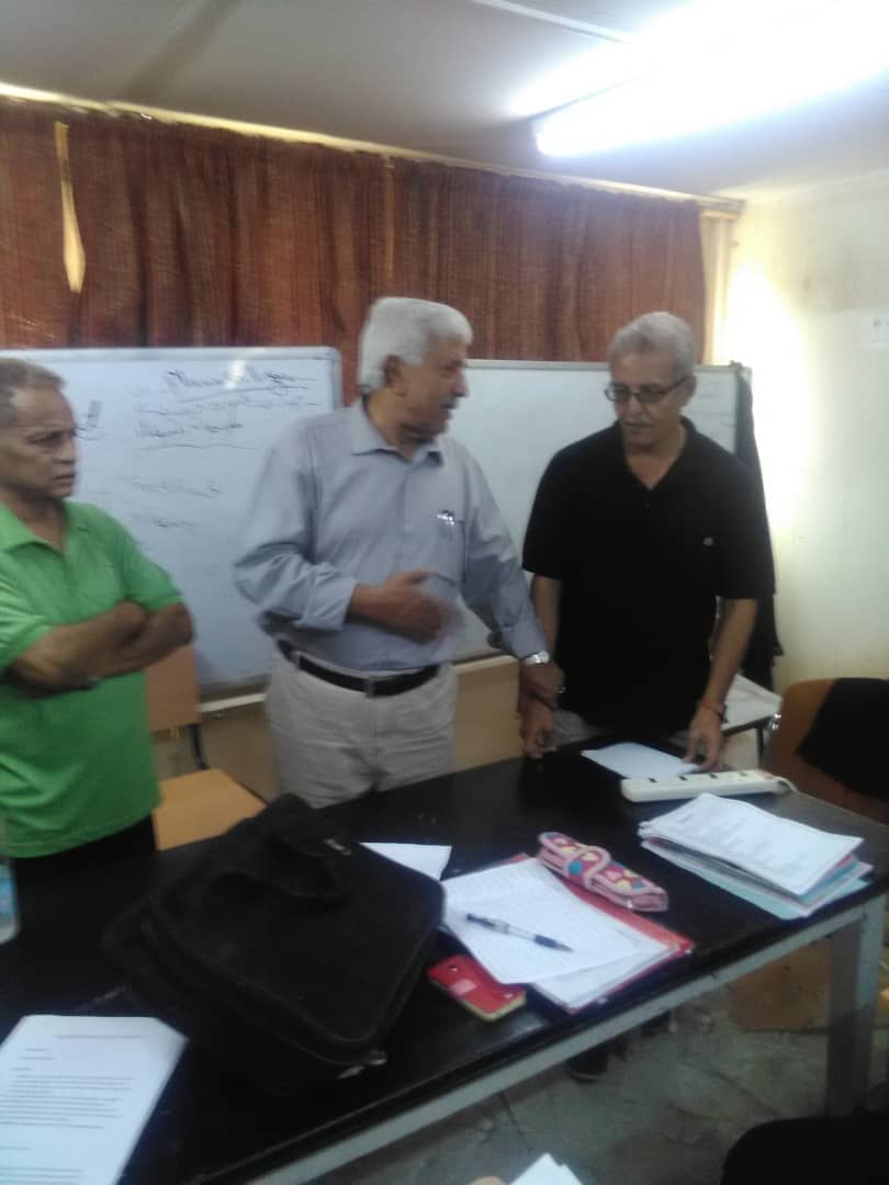 زار د. ناصر باعوم وزير الصحة و السكان مدرسة التمريض في مستشفى الجمهورية التعليمي النموذجي و اطلع على سير العملية التعليمية فيها و تحدث في زيارته الى الدارسين من موظفي مستشفى الجمهورية الذين يدرسون في مدرسة التمريض في دورة الثلاث سنوات لدبلوم التمريض التقني بعد الثانوية العامة و الذين هم الان في الفصل الدراسي الثاني للسنة الدراسية الثانية