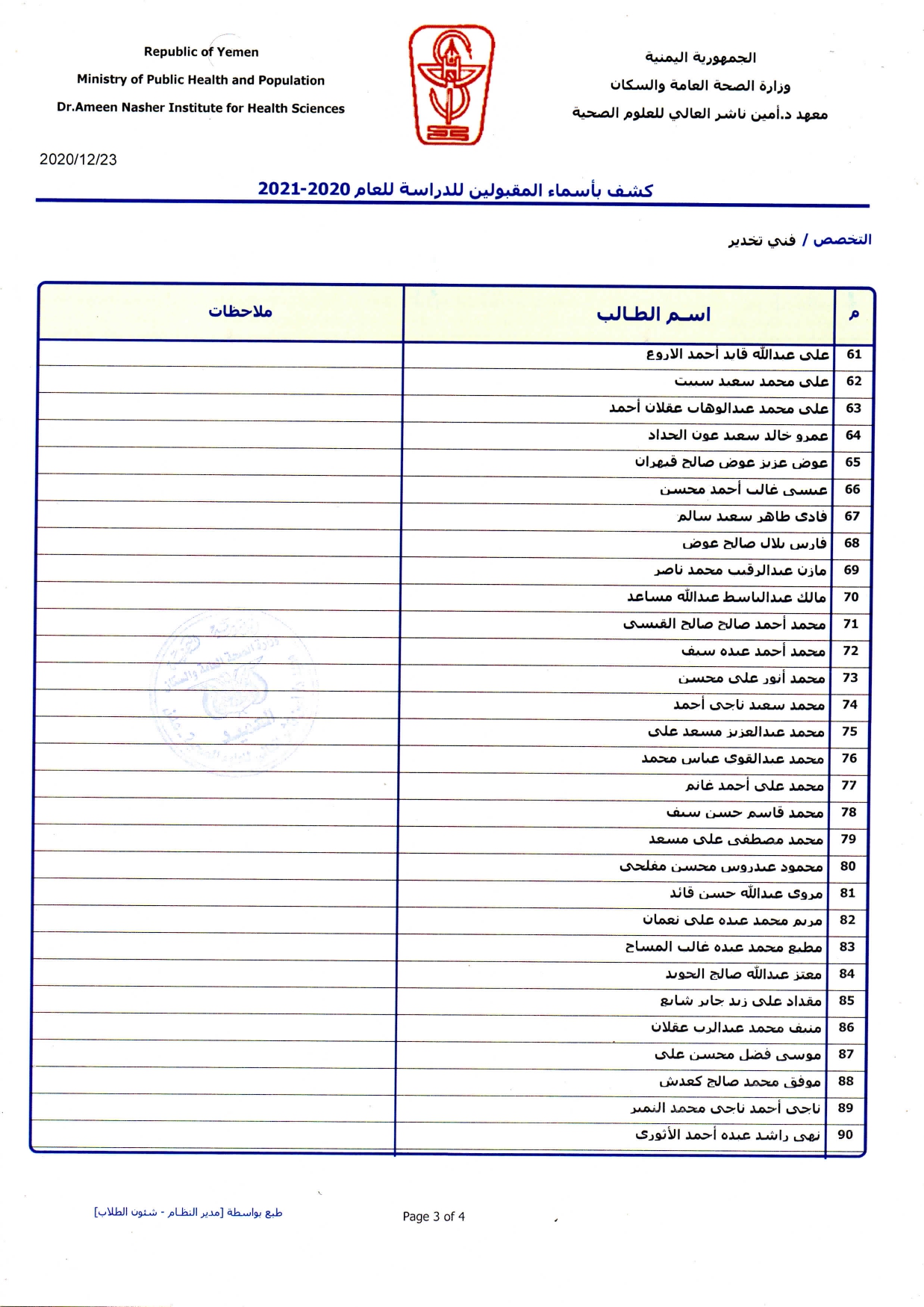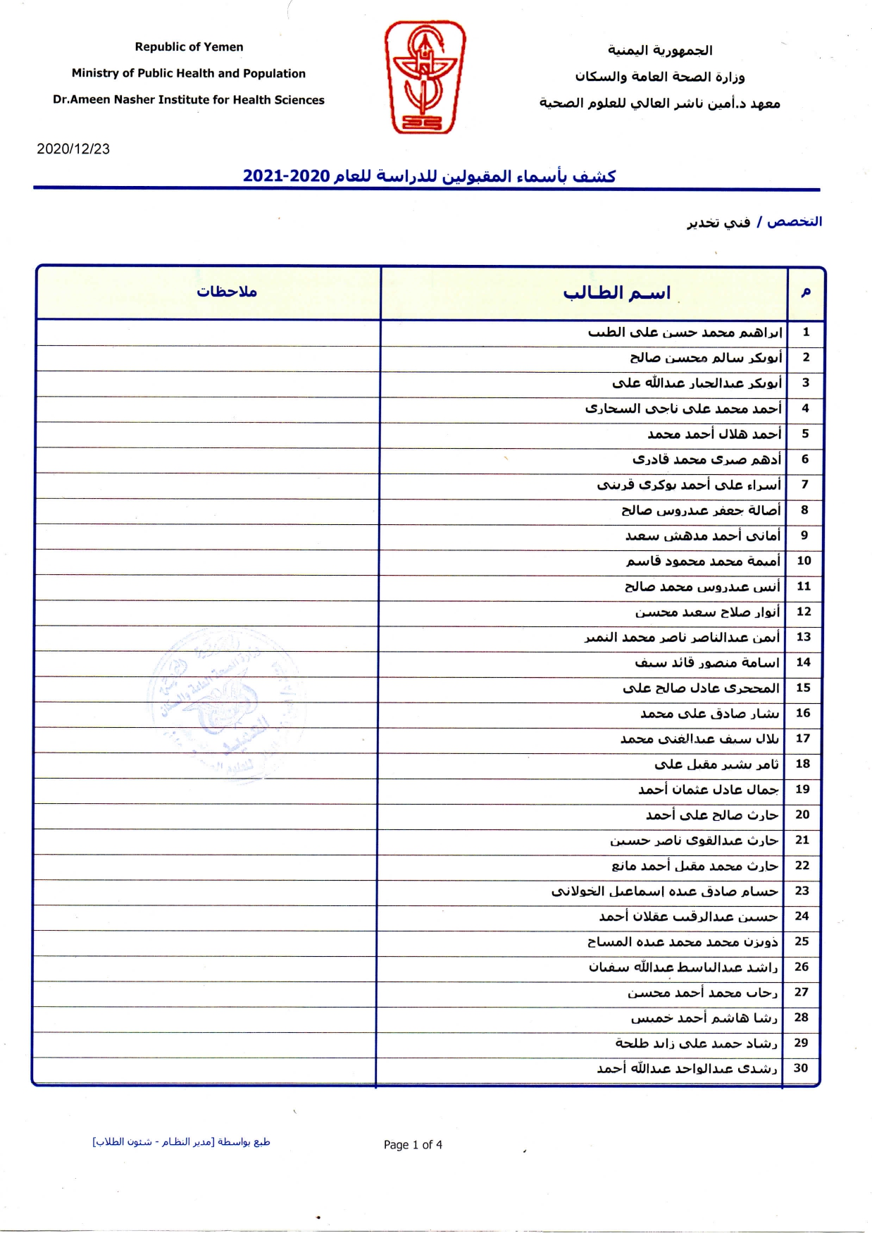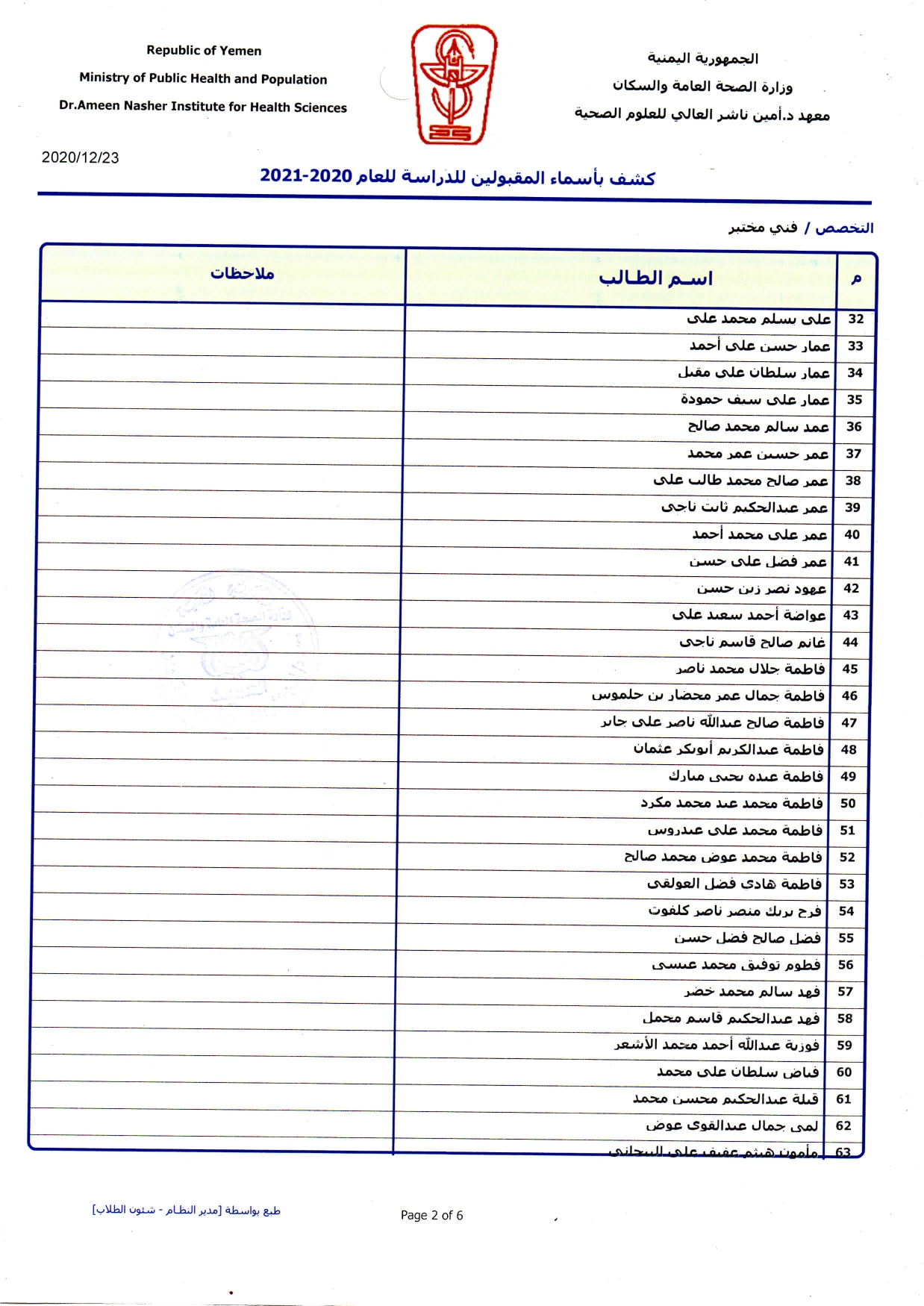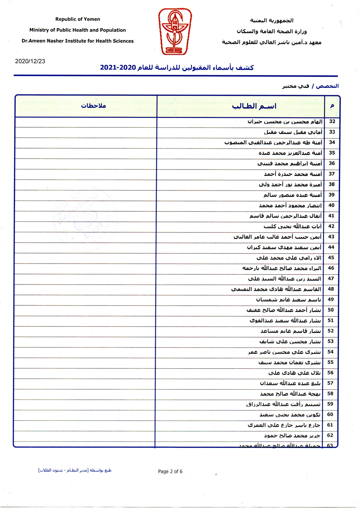اضغط هنا و حمل بضيغة PDF نتائج القبول للعام الدراسي 2020-2021