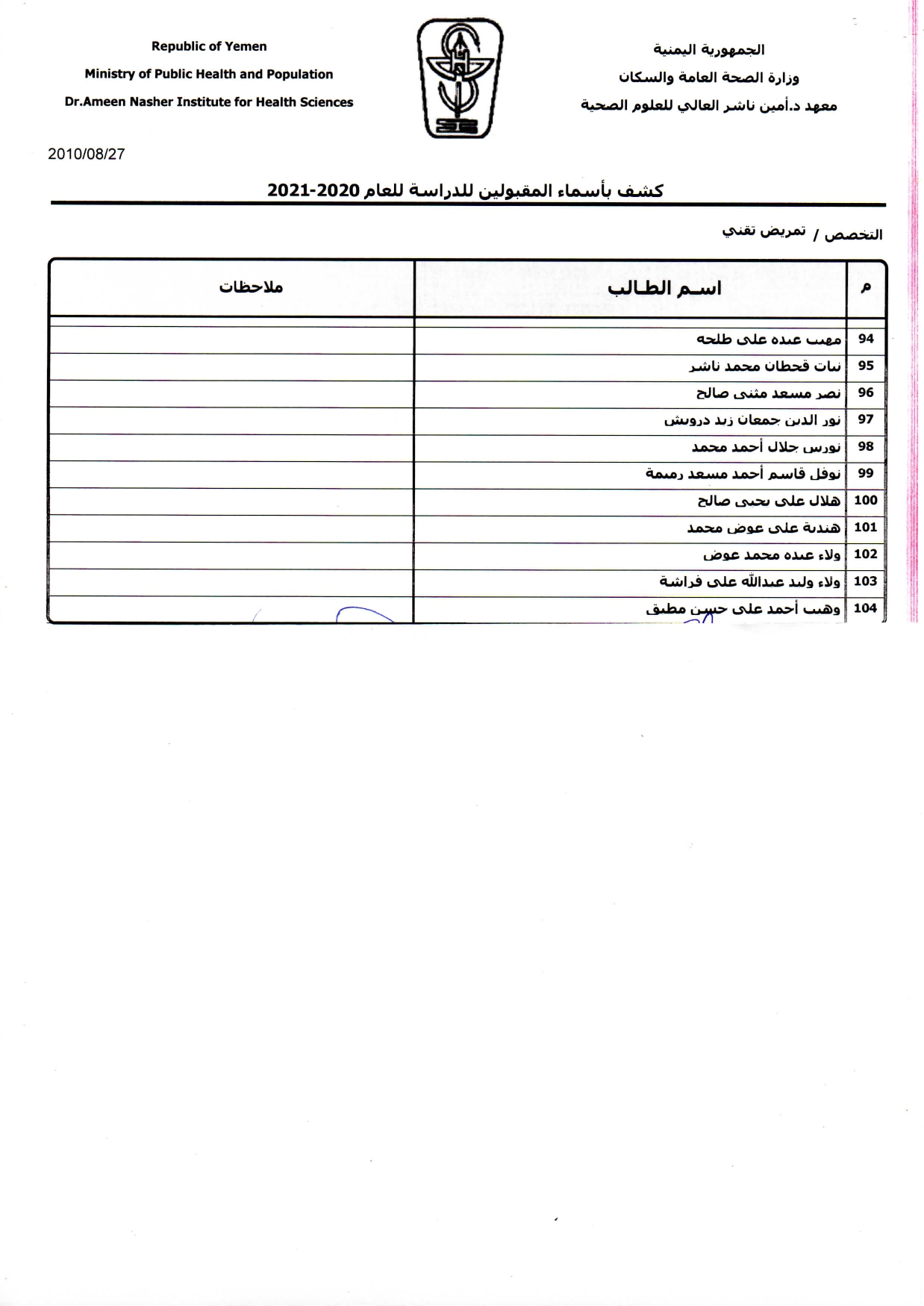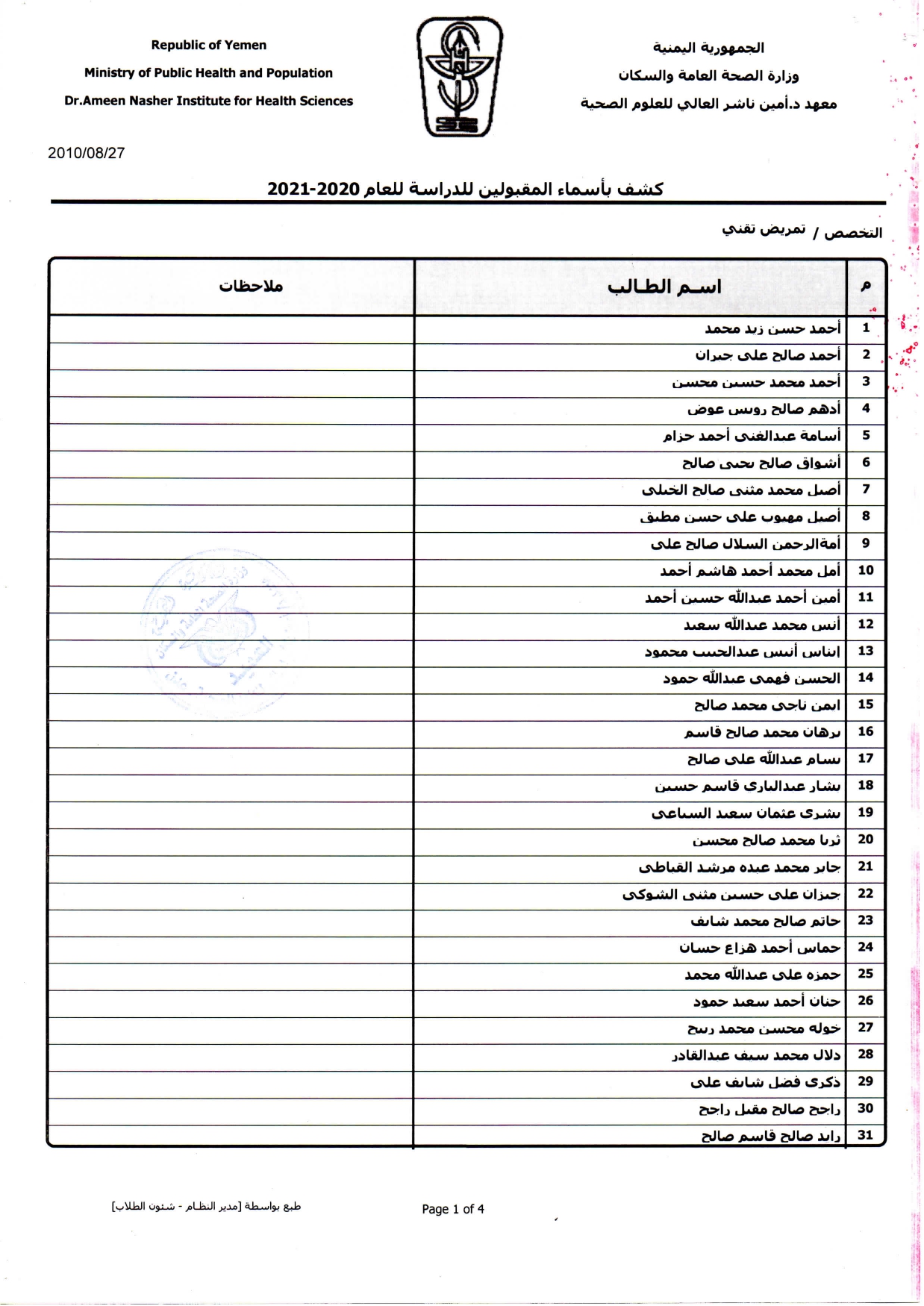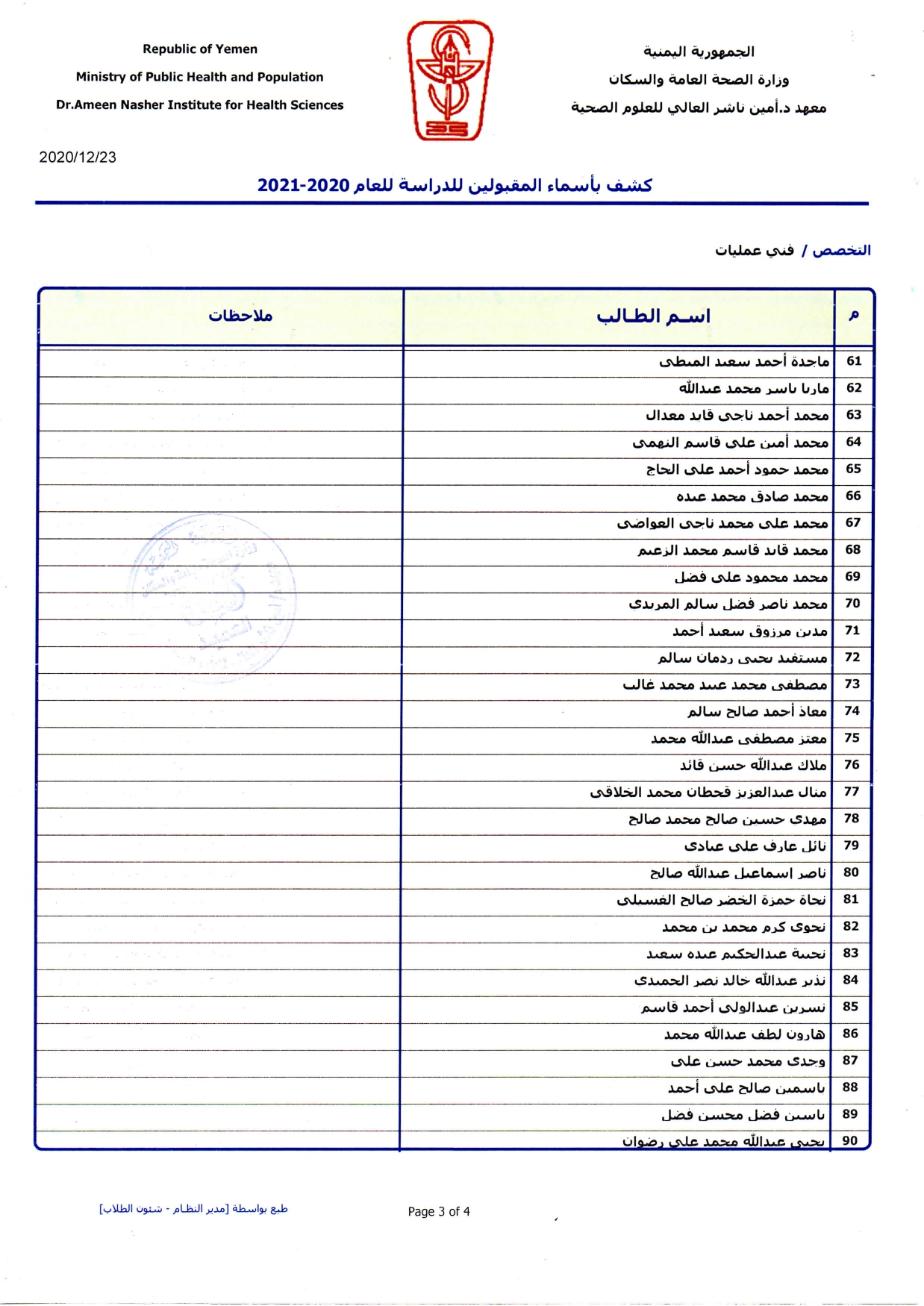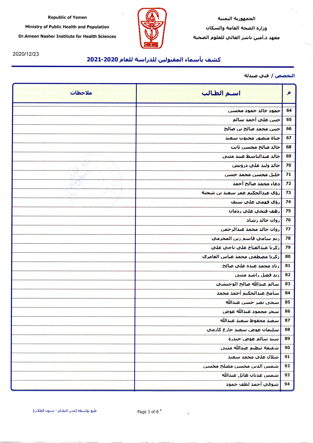 اضغط هنا و حمل بضيغة PDF نتائج القبول للعام الدراسي 2020-2021