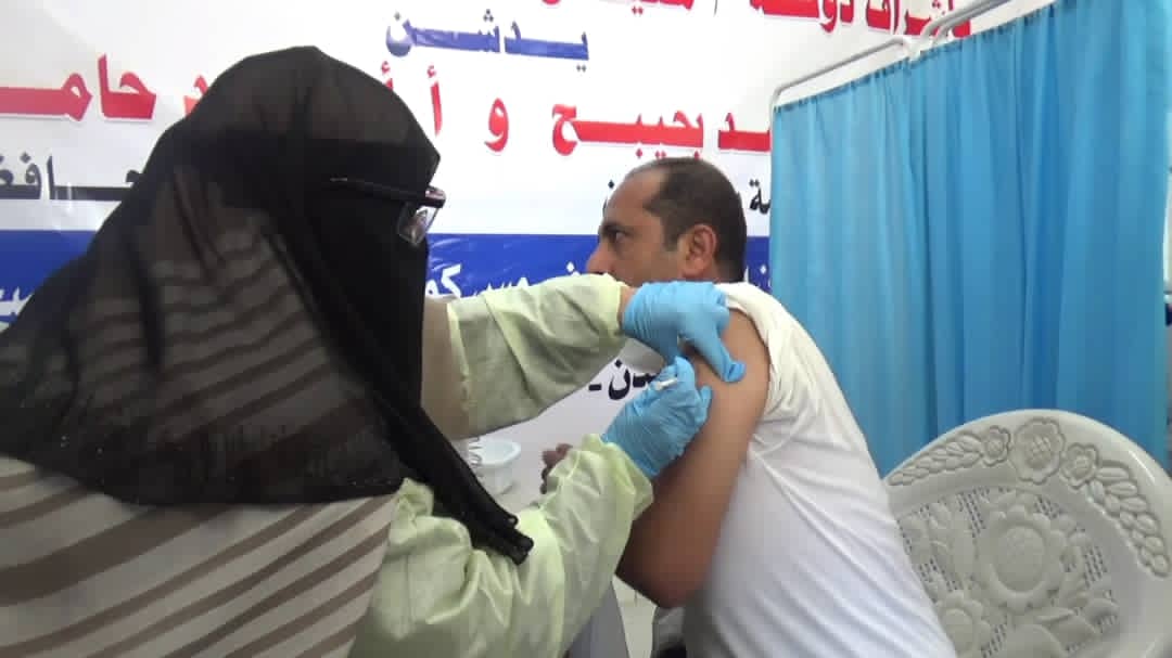 وتلقى خلال التدشين كلاً من وزيرا الصحة العامة والسكان الدكتور قاسم بحيبح والخدمة المدنية والتأمينات الدكتور عبدالناصر الوالي ومحافظ محافظة عدن احمد حامد لملس، وممثل منظمة اليونسيف لدى بلادنا الدكتور فيليب دوميل ومدير مكتب منظمة الصحة العالمية بعدن الدكتورة نهى محمود، التطعيم ضد الفيروس معلنين بذلك التدشين الرسمي للحملة في العاصمة المؤقتة عدن و13 محافظة.