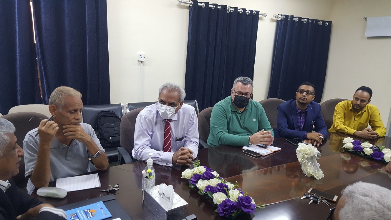 ألتقى صباح هذا اليوم الأحد 13 فبراير 20222 أ. د نجيب ناصر الحميقاني عميد معهد د. أمين ناشر العالي للعلوم الصحية بوفد من منظمة الصحة العالمية الذي ضم د. خالد سعيد المستشار الأقليمي للصحة النفسية في المنظمة و د. ابراهيم أبو خليل مسئول الصحة النفسية في مكتب المنظمة كما حضر هذا اللقاء من جانب وزارة الصحة العامة والسكان د. محمد بن حصية مدير عام الصحة النفسية في الوزارة كما حضر من جانب المعهد د. صادق محمد سالم نائب العميد للشئون الأكاديمية و أ. عبدالله راشد نائب العميد لشئون التطبيق العملي وخدمة المجتمع و أ. بشير محمد علي نائب العميد لشئون الفروع و جلال الخضر مدير دائرة التسجيل والقبول و د. بشار محمد السليماني مدير دائرة التطوير التربوي و زهير أحمد الخضر مدير دائرة الاعلام و العلاقات العامة و أ. عمار حسن رئيس قسم المصادر المعلوماتية.