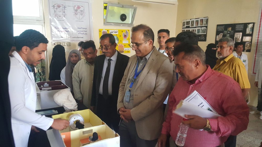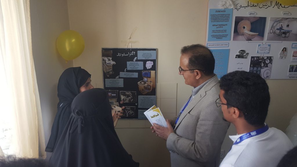 وطاف وزير الصحة ومرافقوه بالمكتبة العلمية و معمل الأسنان و بأجنحة المعرض العلمي المختلفة واطلع على ابداعات الطلاب في التخصصات العلمية للأشعة والمختبر والصيدلة والأسنان والعلاج الطبيعي والصحة الانجابية، والتمريض وصحة المجتمع والتخدير والعمليات.