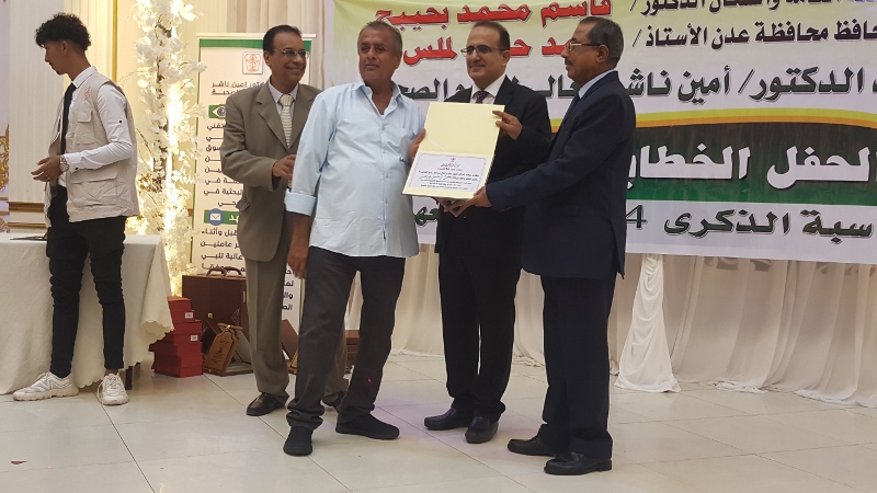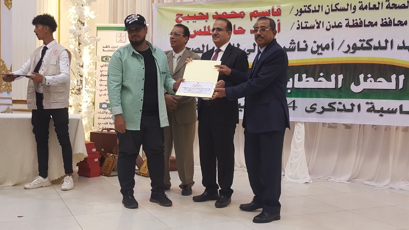 وفي ختام الحفل كرم معالي وزير الصحة الدكتور/ قاسم بحيبح و الدكتور/ جمال ناصر امذيب عميد معهد أمين ناشر محافظ محافظة عدن الأخ أحمد لملس بدرع استلمها نيابة عنه عبدالحكيم الشعيبي وكيل محافظة عدن والدكتور/ أحمد مثنى البيشي مدير عام مكتب الصحة العامة والسكان بعدن والدكتور /عبدالقادر الباكري المدير التنفيذي للهيئة العليا للأدوية والمستلزمات الطبية والدكتور/ الخضر لصور رئيس جامعة عدن والدكتورة /إشراق السباعي وكيل مساعد لوزارة الصحة والدكتورة/ رجاء مسعد مدير عام مستشفى الصداقة التعليمي، كما تم تكريم شخصيات تعاقبت على عمادة المعهد منذ تأسيسه وحتى الوقت الراهن على كرسي عمادة المعهد وعدد من الكفاءات المشهود لها، وعدد من الدكاترة والأكاديميين وأساتذة المعهد بشهادات تقديرية تقديراً لجهودهم ودعمهم ومتابعتهم المتواصلة لتطوير العملية التعليمية في المعهد.