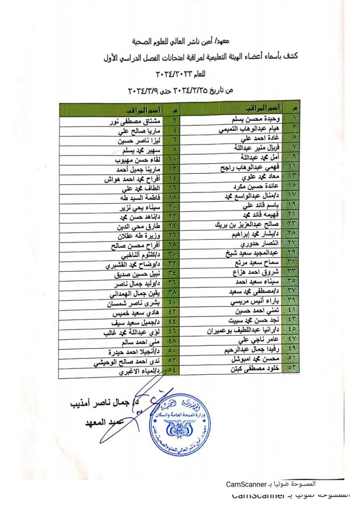 كشف بأسماء اعضاء الهيئة التعليمية لمراقبة امتحانات الفصل الاول للعام ٢٠٢٣ / ٢٠٢٤ م 2024-02-20zuhaer ahmad