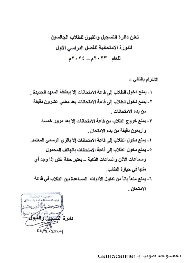 شروط الجلوس لامتحانات الفصل الاول للعام الدراسي ٢٠٢٣ / ٢٠٢٤ م