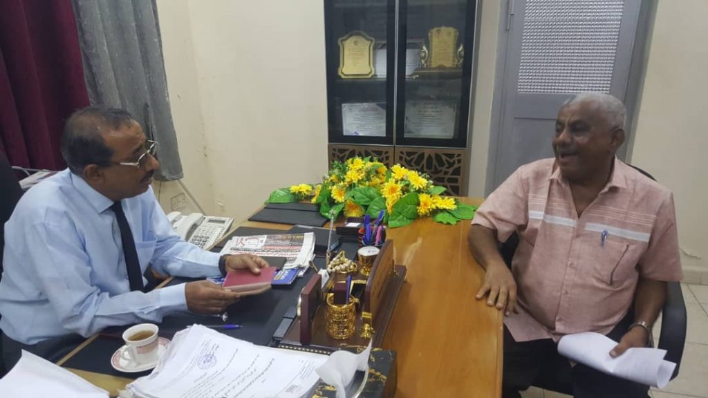 التقى اليوم في مكتبة الدكتور/ جمال ناصر امذيب عميد معهد د . أمين ناشر العالي للعلوم الصحية الدكتور/ محمد عبدالله عوض جمبا المدير المعين لمعهد د. أمين ناشر العالي للعلوم الصحية فرع أبين.