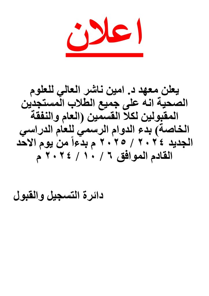 الإعلان عن موعد بدء الدراسة وأسماء الطلاب المقبولين للقسم العام للعام الدراسي ٢٠٢٤ / ٢٠٢٥ مالإعلان عن أسماء الطلاب المقبولين للقسم العام للعام الدراسي ٢٠٢٤ / ٢٠٢٥ م 2024-10-03zuhaer ahmad