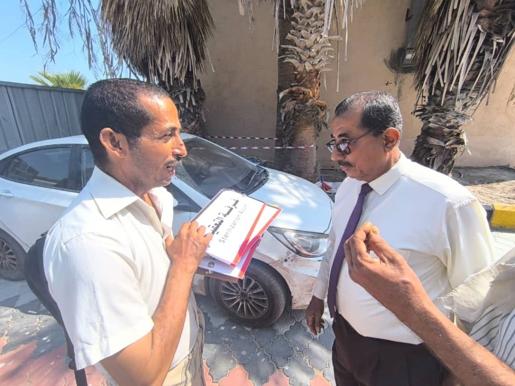 طاف الدكتور جمال ناصر امذيب عميد المعهد في مواقع إعادة التأهيل في المعهد في المرحلة الاولى التي تنفذها منظمة UNOPS بتمويل من الحكومة الألمانية حيث طاف بالمركز الطبي المزمع فتحه للتدريب في الفترة الصباحية و لتقديم الخدمة المجتمعية في الفترة المسائية كما و زار عيادة ومعمل الأسنان وقاعات المؤتمرات و معامل المختبرات و الفصول الدراسية.