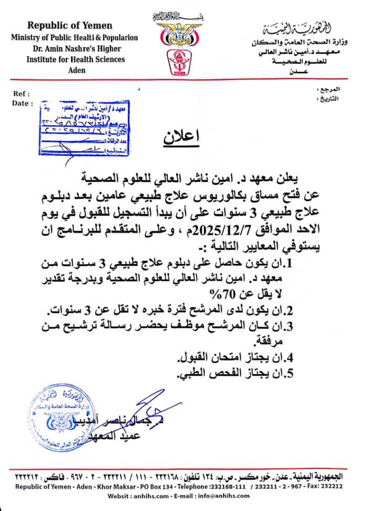 الاعلان عن فتح باب التسجيل للبكلاريوس التكميلي لمساق العلاج الطبيعي