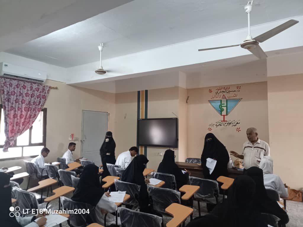 دشن مدير فرع معهد أمين ناشر للعلوم الصحية بمحافظة أبين الدكتور محمد عبدالله عوض جمبا بمعية النائب الإكاديمي الاخ / سعيد علي عمر إختبارات الفصل الدراسي الأول لعام 2025 / 2026م لمختلف أقسام المعهد والبالغ عددهم ( 494) طالب طالبة في أقسام مساعد طبيب عام وقابلات تقني وتمريض تقني ومختبرات وصيدلة وقبالة مجتمع بنظام ثلاث سنوات مساق دبلوم عالي بعد الثانوية العامة