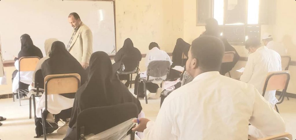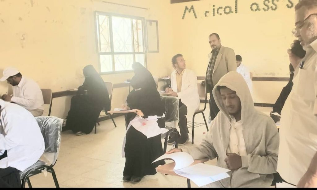 و في جو يسوده الهدوء يؤدي طلاب تمريض عام…قباله..مساعد طبيب عام..فني مختبرات..مساعد طبيب اسنان امتحاناتهم بأشراف من مدير المعهد الفرعي الاستاذ / محمد سالمين بن ماضي وقد طاف نائب مدير الفرع للشئون الأكاديمية الاستاذ / بسام جودات الحوشبي بقاعات الامتحان متفقدا سير العملية الامتحانية ومطلعا على الاحتياجات الآنيه لها ولتذليل اي معوقات قد تعيقها.