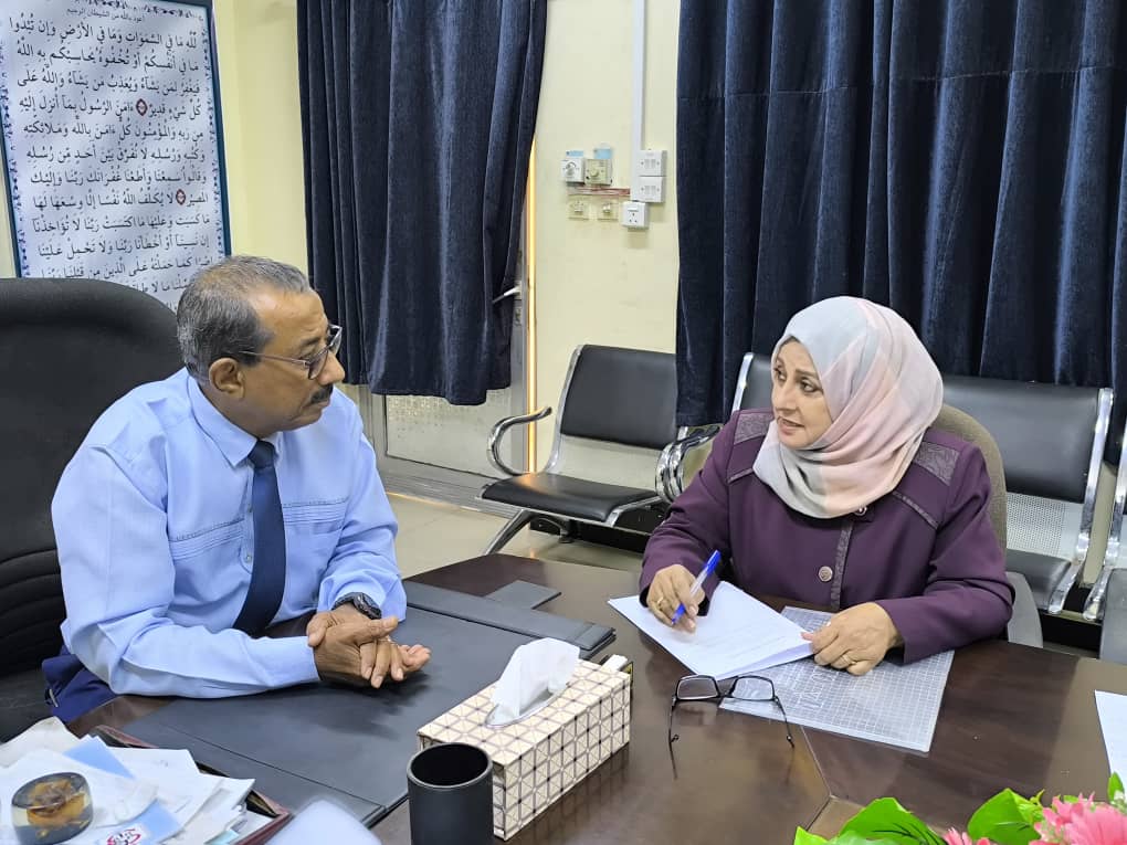 الاستاذ/ احمد المحضار نائب العميد لشئون الطلاب والفروع والاستاذة/ وحيدة محسن الكثيري مدير دائرة التطوير الاكاديمي والاستاذ/ عبدالمجيد سعيد شيخ مدير دائرة برامج التمريض والاستاذة / فهيمة قائد محمد رئيس قسم التخدير والأستاذة / باسم قائد علي