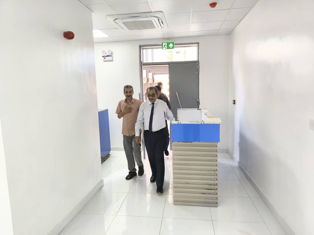 هذا و قد قام العميد برفقة مهندسي المنظمة المنفذة للمشروع بجولة في المباني التي يتم فيها عمليات إعادة التأهيل و متابعة ما وصلت اليه اعمال التجريب الأولى لانظمة الكهرباء والتكييف و ما تم من تطبيق على نظام إطفاء الحريق لمبنى المركز الطبي المزمع فتحه للتدريب في الفترة الصباحية و لتقديم الخدمة المجتمعية في الفترة المسائية