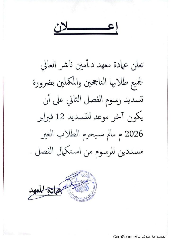 الاعلان عن اخر موعد لتسديد رسوم الفصل الثاني