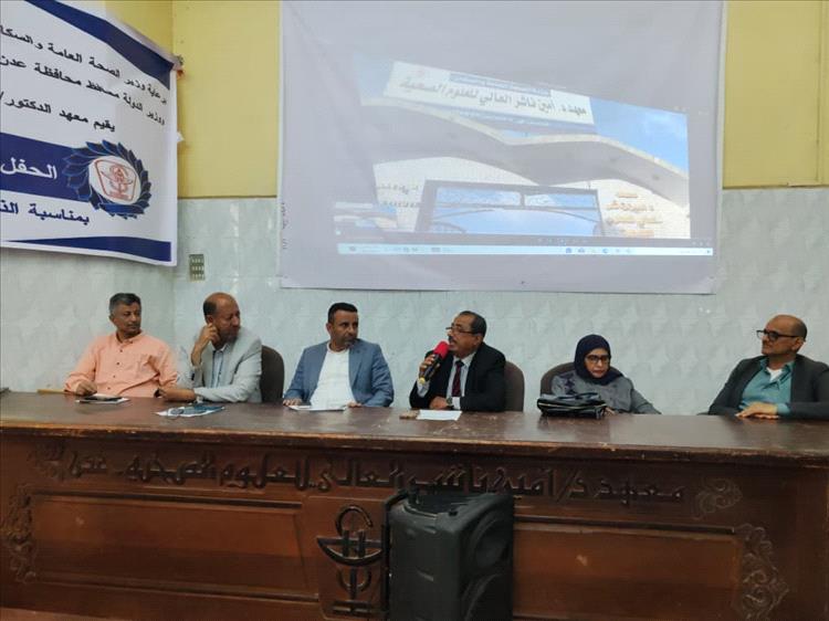 وشهد الحفل حضور وكيل وزارة الصحة العامة والسكان لقطاع الرعاية الصحية الأولية الدكتور علي أحمد الوليدي ورئيس المجلس الطبي الأعلى الدكتور عمر زين والوكيل المساعد لوزارة الصحة العامة والسكان الدكتورة إشراق السباعي وعميد معهد الدكتور أمين ناشر العالي للعلوم الصحية الدكتور جمال أمذيب إلى جانب مدير عام المركز الوطني للتثقيف والإعلام الصحي والسكاني الدكتور عارف الحوشبي وعدد من نواب العميد ومدراء الإدارات ورؤساء الأقسام وأعضاء الهيئة التعليمية وجمع من الطلاب والمهتمين