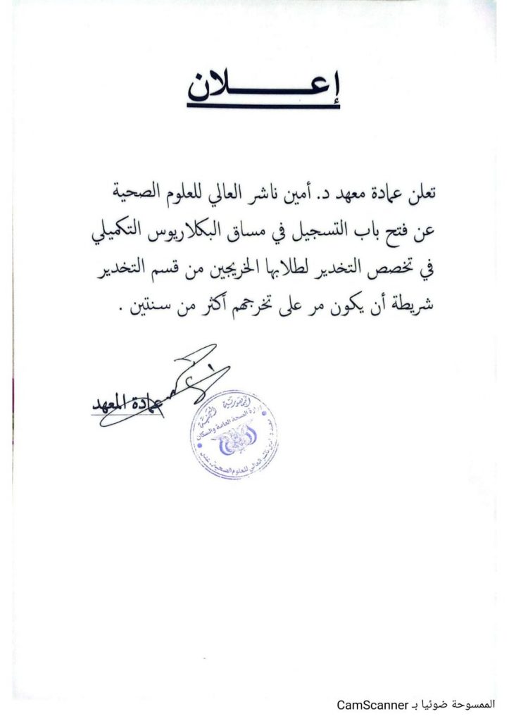 الاعلان عن فتح باب التسجيل لمساق البكلاريوس التكميلي في تخصص التخدير
