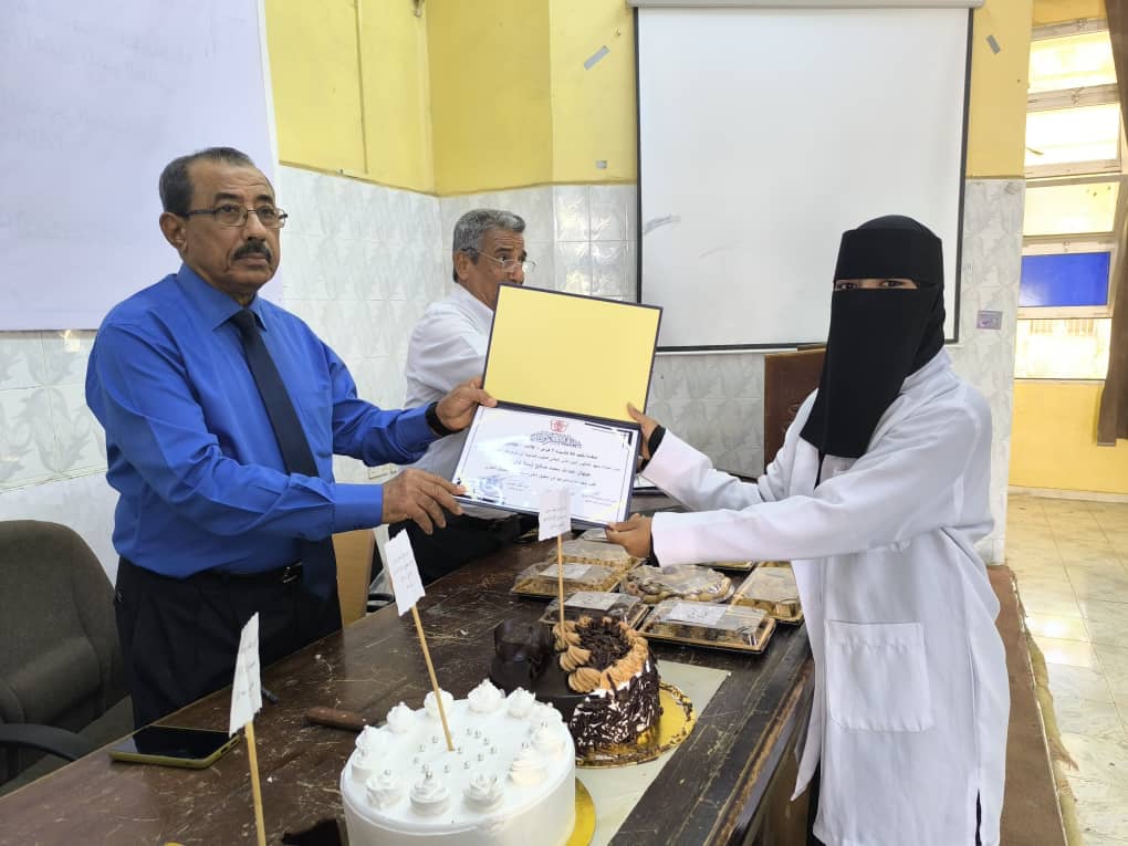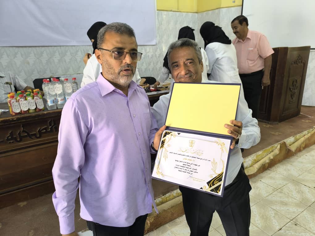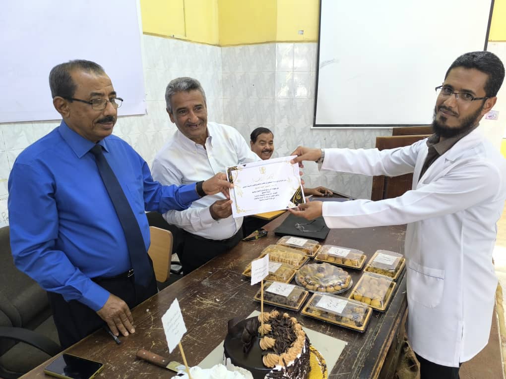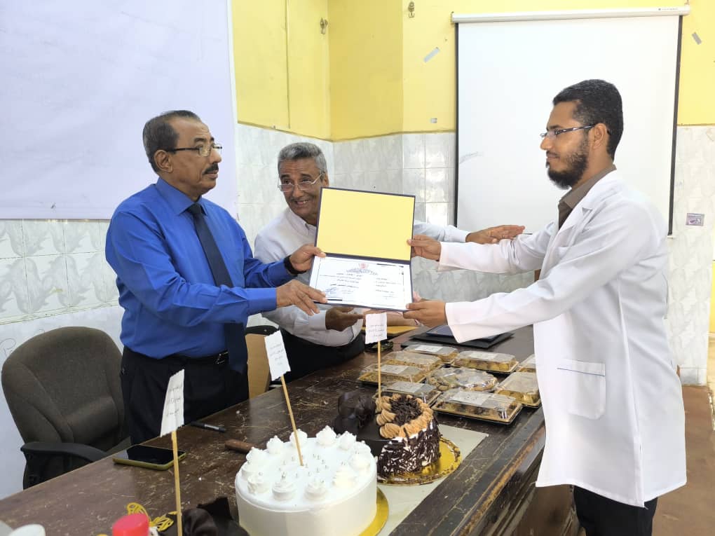 كما قام الطالب النجيب / عبدالمجيد حسين بالنيابة عن طلاب قسم صحة المجتمع بتكريم الاستاذ نبيل صديق مدير الدائرة نظير الجهود الذي يبذلها خلال تولية دائرة برامج صحة المجتمع