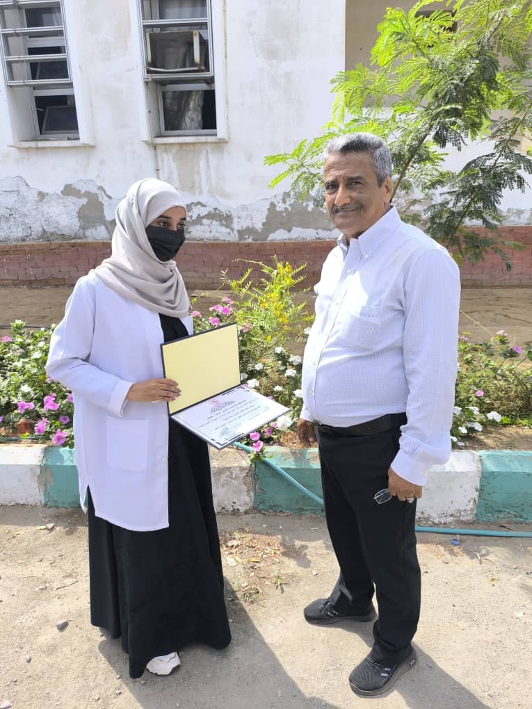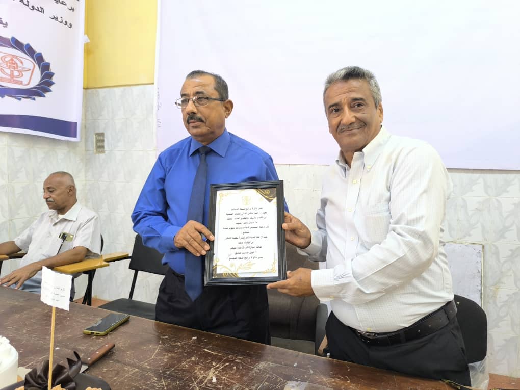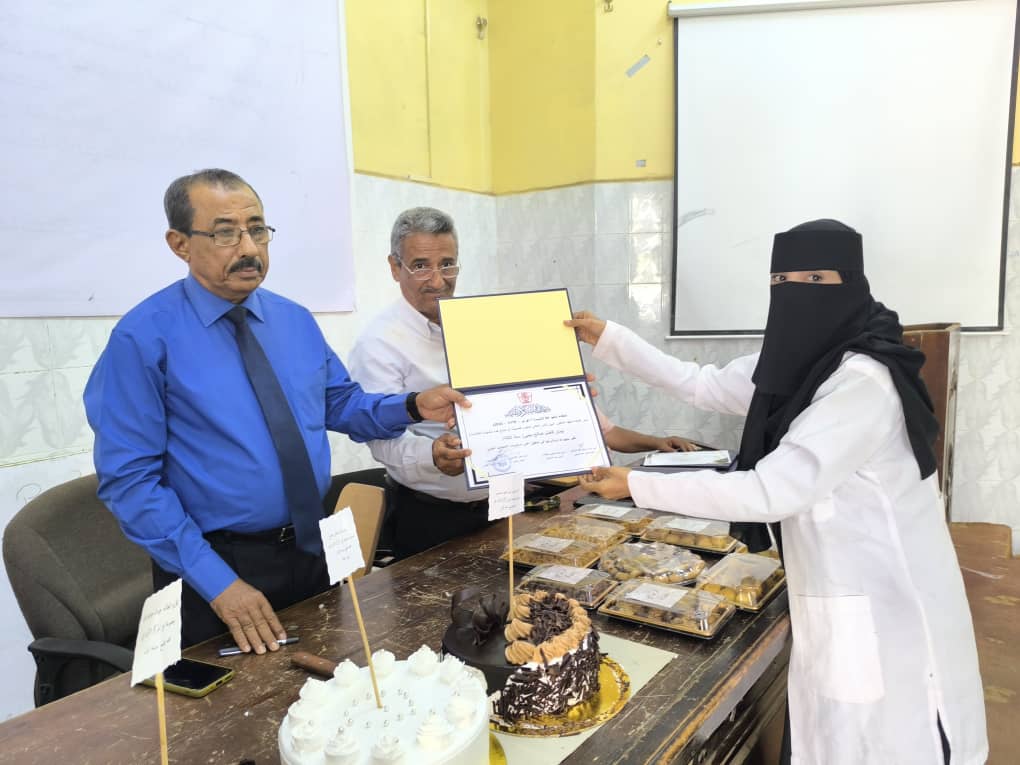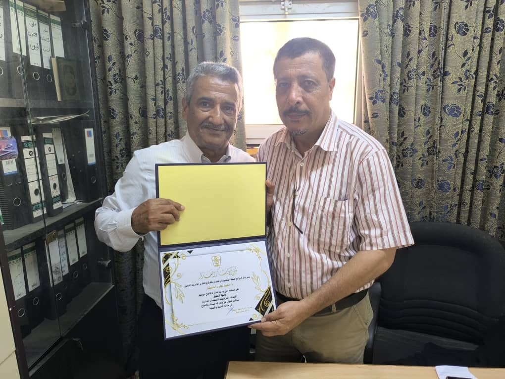 كما قام الطالب النجيب / عبدالمجيد حسين بالنيابة عن طلاب قسم صحة المجتمع بتكريم الاستاذ نبيل صديق مدير الدائرة نظير الجهود الذي يبذلها خلال تولية دائرة برامج صحة المجتمع