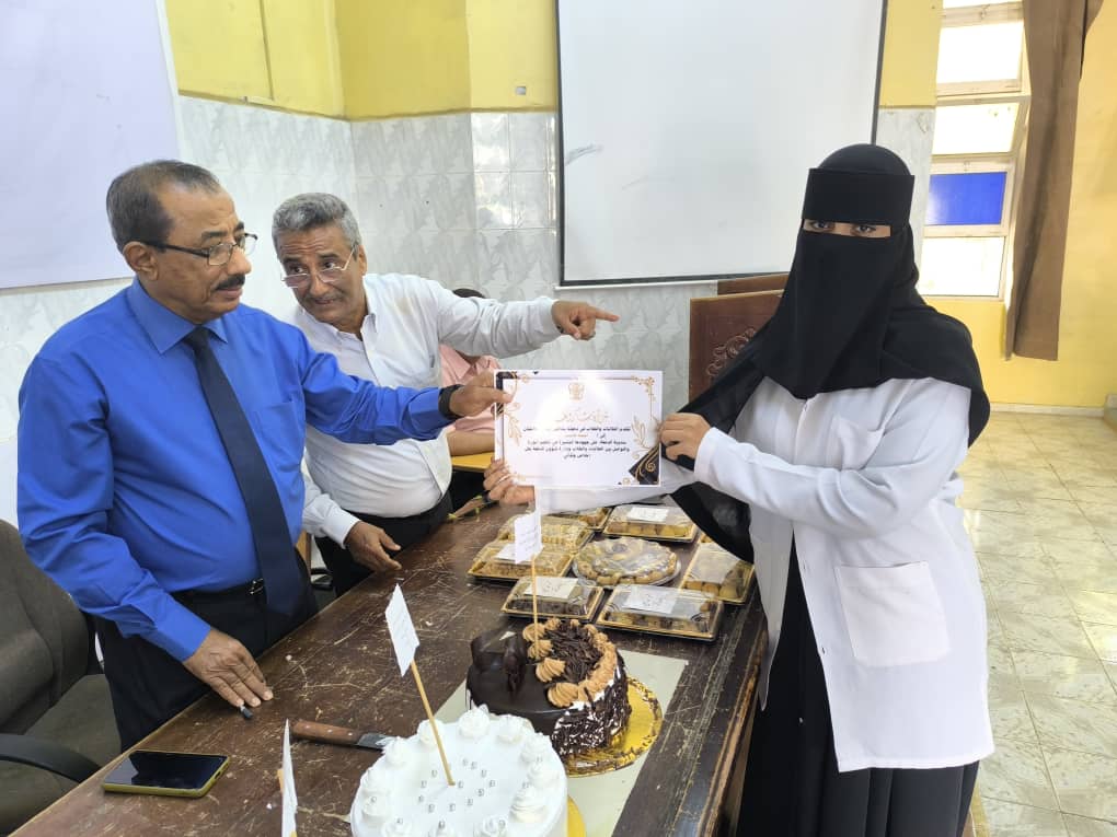 في الحفل رحب مدير دائرة صحة المجتمع الأستاذ / نبيل حسين صديق بحضور عميد المعهد الدكتور / جمال ناصر امذيب مشيدا بدورة في إعادة المعهد الى سابق عهده من التطور والازدهار على كافة النواحي وقامت دائرة برامج صحة المجتمع بالمشاركة مع دائرة الانشطة الطلابية بتكريم العميد على جهوده المبذولة منذ تولية دفة قيادة المعهد.