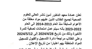 أكمل القراءة »اعلان للطلاب المتعثرين الذين لهم مواد معلقة من اعوام سابق منذ العام 2013 – 2014 م