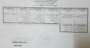 أسماء المراقبين لإمتحانات الفصل الثاني للعام الدراسي 2016 / 2017 م